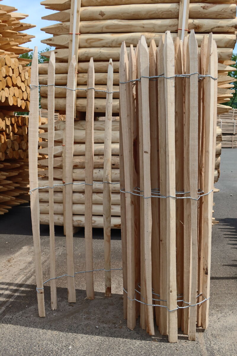 La ganivelle sciée est disponible en plusieurs hauteurs différentes, ainsi qu’avec plusieurs écartements des échalas différents.